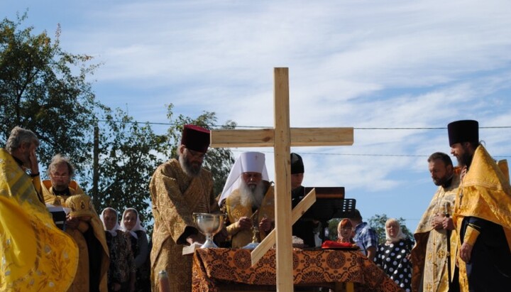 Богослужение возглавил Высокопреосвященнейший митрополит Амвросий, которому сослужили благочинный округа протоиерей Михаил Терещенко, настоятель строящегося храма протоиерей Владислав Добрый день и духовенство благочиния.