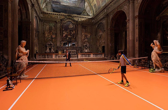 В соборе Обращения Святого Павла в Милане художник Асад Раза устроил арт-инсталляцию – теннисный корт. Об этом сообщает ufunk.net.