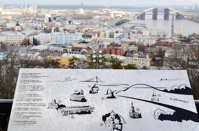 На смотровой площадке Андреевской церкви установили схему храмов Подола