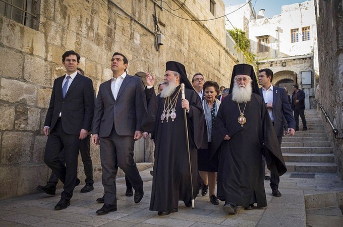 Митрополит Калавритский напомнил, что в ходе официального визита в Израиль Ципрас вел себя по другому: «Он словно школьник смирено надел кипу и стоял у Стены плача».