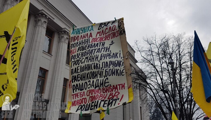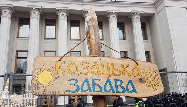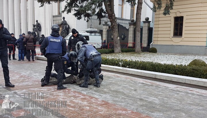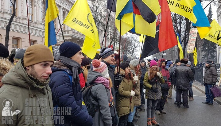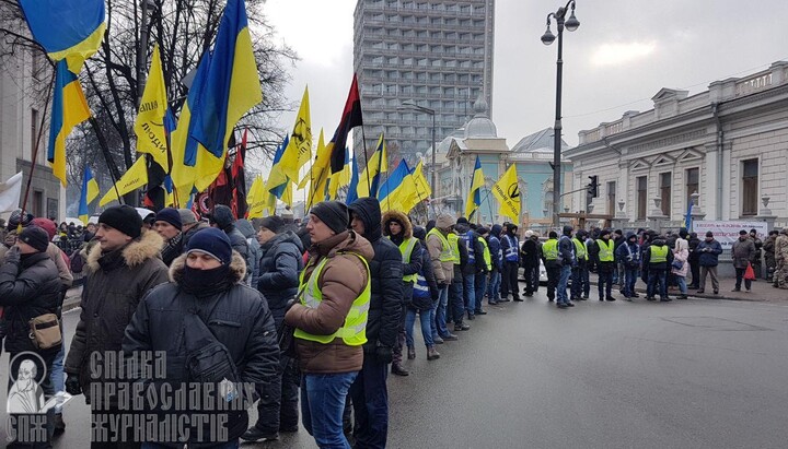 16 января примерно в 9:30 под стенами Верховной Рады Украины началась акция «Стоп реванш». Как передает корреспондент СПЖ, митингующие в том числе требуют принять антицерковные законопроекты. При этом полицейских для охраны порядка собралось больше, чем самих протестующих.