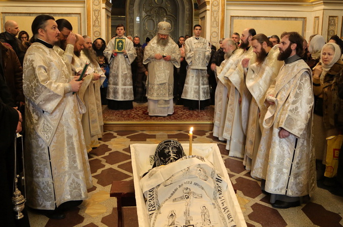 Тело почившего было доставлено в Успенский собор 20 января, перед всенощным бдением, по окончании которого в сослужении братии Киево-Печерской лавры была совершена лития по усопшему собрату.