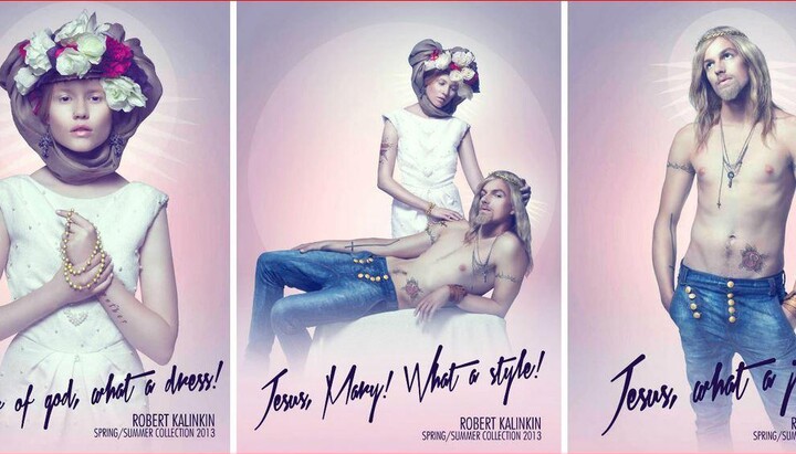 Персонажами рекламной компании одежды дизайнера Робертаса Калинкинаса осенью 2012 года стали татуированные молодой длинноволосый мужчина и женщина в белом одеянии. Рядом с этими персонажами были следующие реплики: «Иисус, какие у тебя брюки!», «Мария, дорогая, какое платье!» и «Иисус, Мария, во что они одеты!».