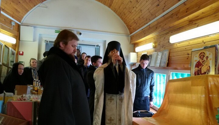 Перед открытием глава отдела социального служения обители иеромонах Лукиан в сопровождении хора КДАиС отслужил молебен, поздравил всех с наступающим праздником Сретения, пожелал Божией помощи в земных и духовных трудах, а после окропил участников и гостей ярмарки священной водой.