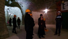 Экскурсанты посетили православный храм, расположенный в шахтах. Его стены и потолок – соляной грот. Иконостас выполнен из кирпичной кладки и дерева. Есть и подземная колокольня.