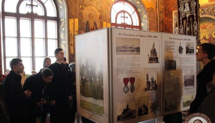 В рамках международной научной конференции «Киевский митрополит сщмч. Владимир (Богоявленский) и начало гонений на Православную Церковь в ХХ веке» в Трапезной палате храма прп. Антония и Феодосия Печерских на территории Киево-Печерской лавры состоялось открытие выставки, посвященной 100-летию мученической смерти сщмч. Владимира (Богоявленского), митрополита Киевского и Галицкого. Стенды выставки были разделены на несколько тем, один из которых посвящен связям сщмч. Владимира с Афоном.
